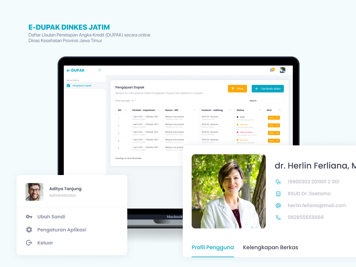 E-DUPAK atau Elektronik – Daftar Usulan Penetapan Angka Kredit (DUPAK) merupakan aplikasi berbasis web yang digunakan untuk mempermudah dalam mengurus kenaikan pangkat secara online Dinas Kesehatan Provinsi Jawa Timur