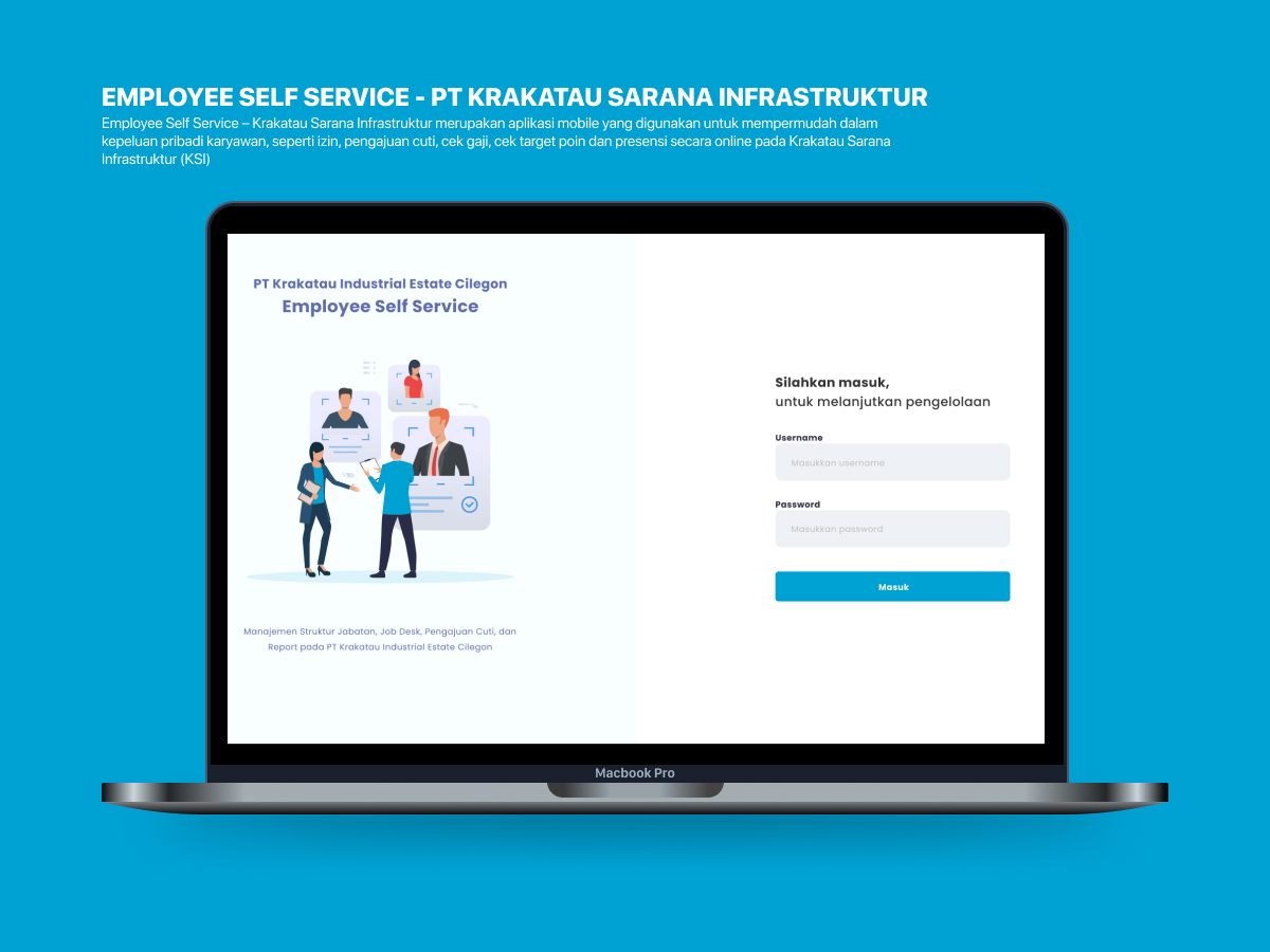 Employee Self Service – Krakatau Sarana Infrastruktur merupakan aplikasi web yang digunakan untuk mempermudah dalam kepeluan pengaturan lokasi kantor, poin, dan setting izin tahunan pada Krakatau Sarana Infrastruktur (KSI)
